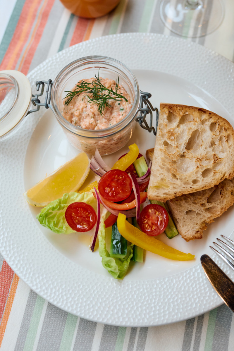 58. Mustáros lazactatár friss zöldségekkel és házi pirított kenyérrel Fotó a c d i j