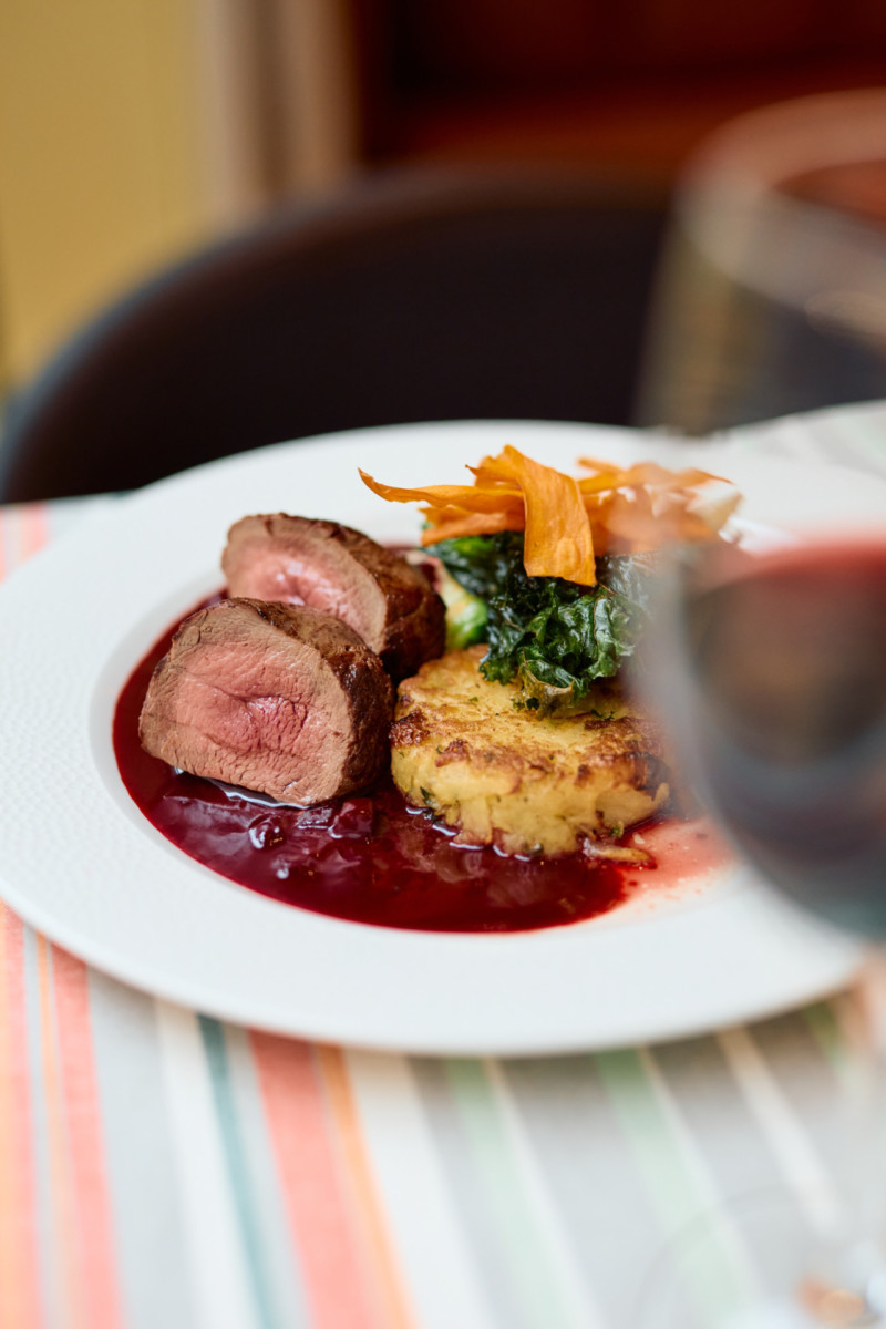68. Szarvasgerinc téli zöldségekkel, rösztivel és vörösboros céklamártással Fotó a g i l