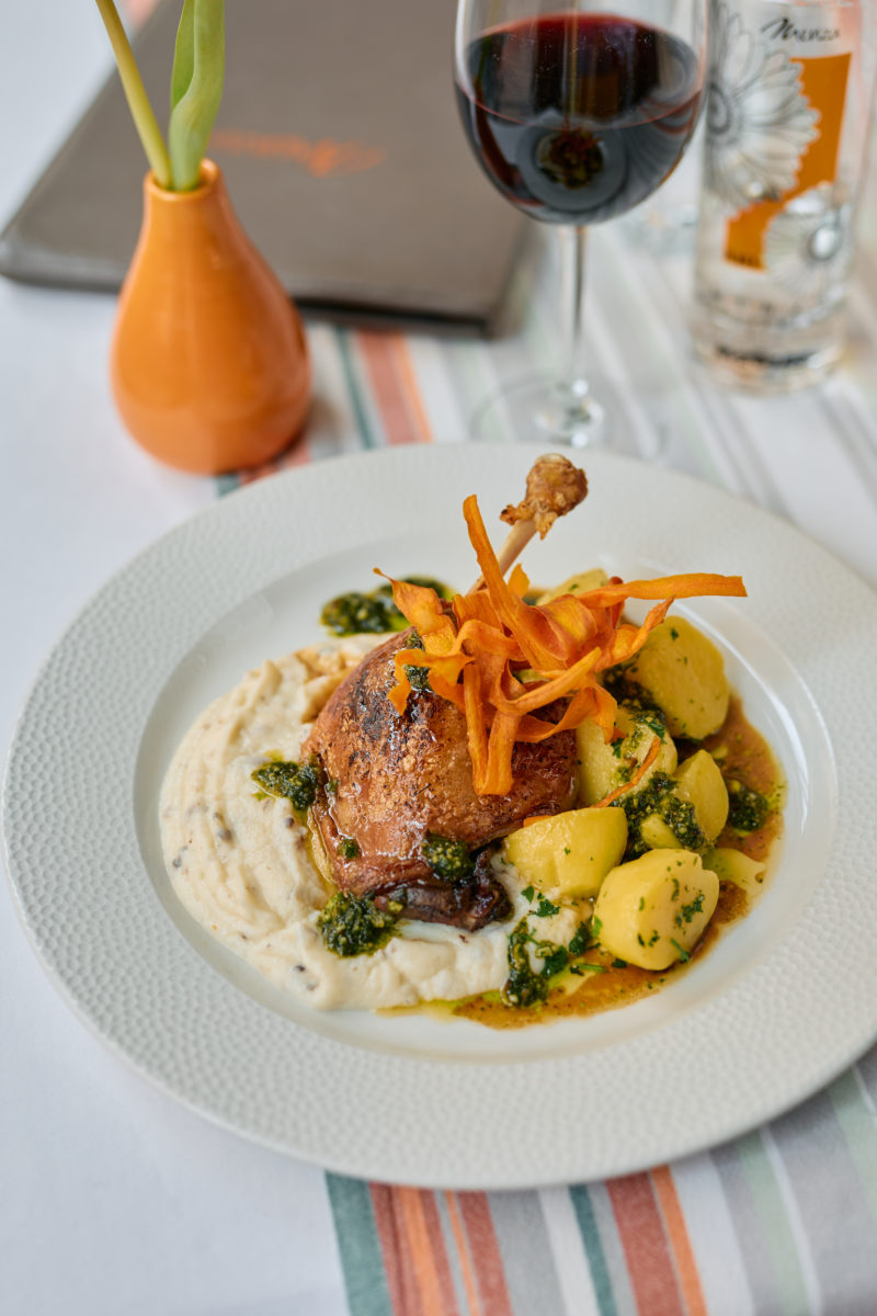 65. Ropogós kacsacomb szarvasgombás karfiolpürével, burgonyával és pisztáciás pestoval Fotó g h i