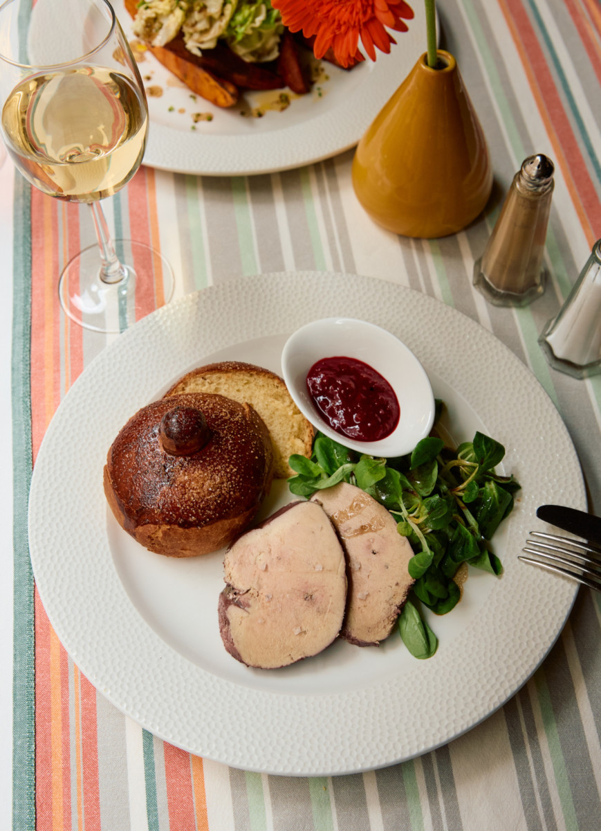 59. Hígado de oca estofado en vino con brioche casero y mermelada de cereza ácida foto a c g l5.990 HUF
