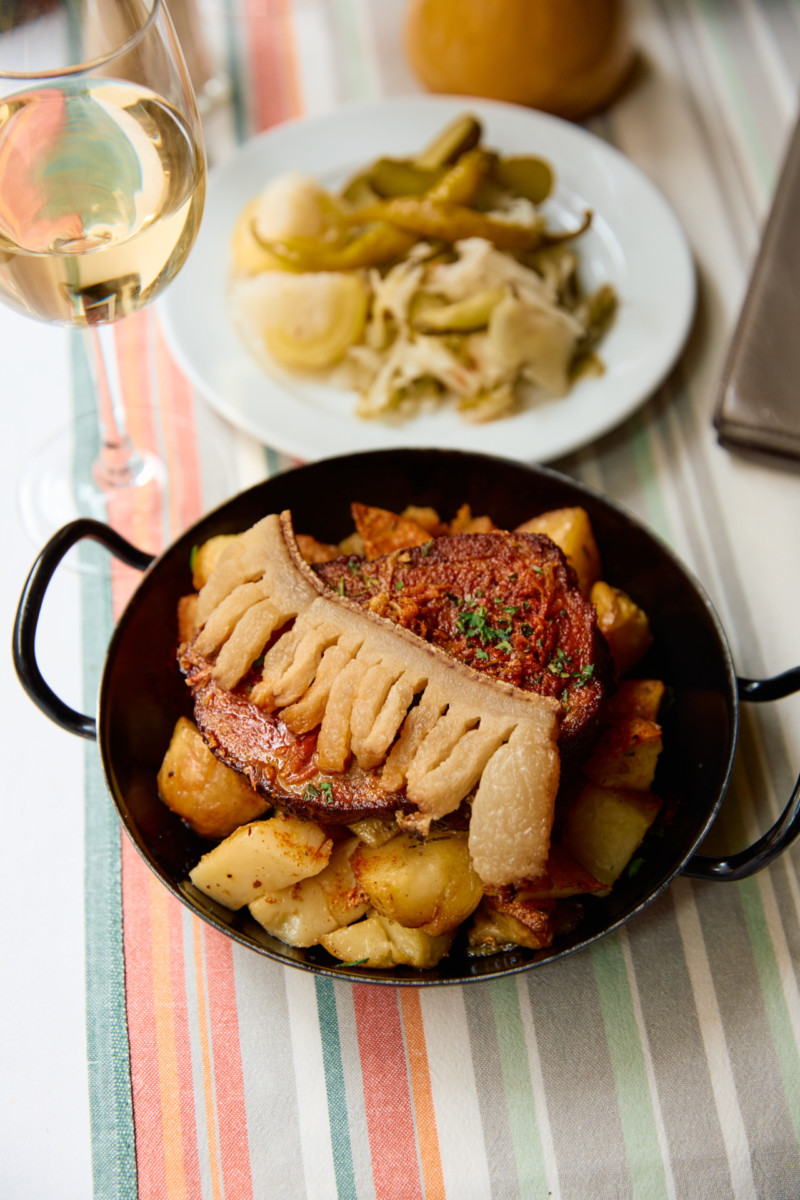 68. Asado ’gitano’ de lomo de cerdo mangalica con patatas al horno y encurtidos caseros foto i6.990 HUF