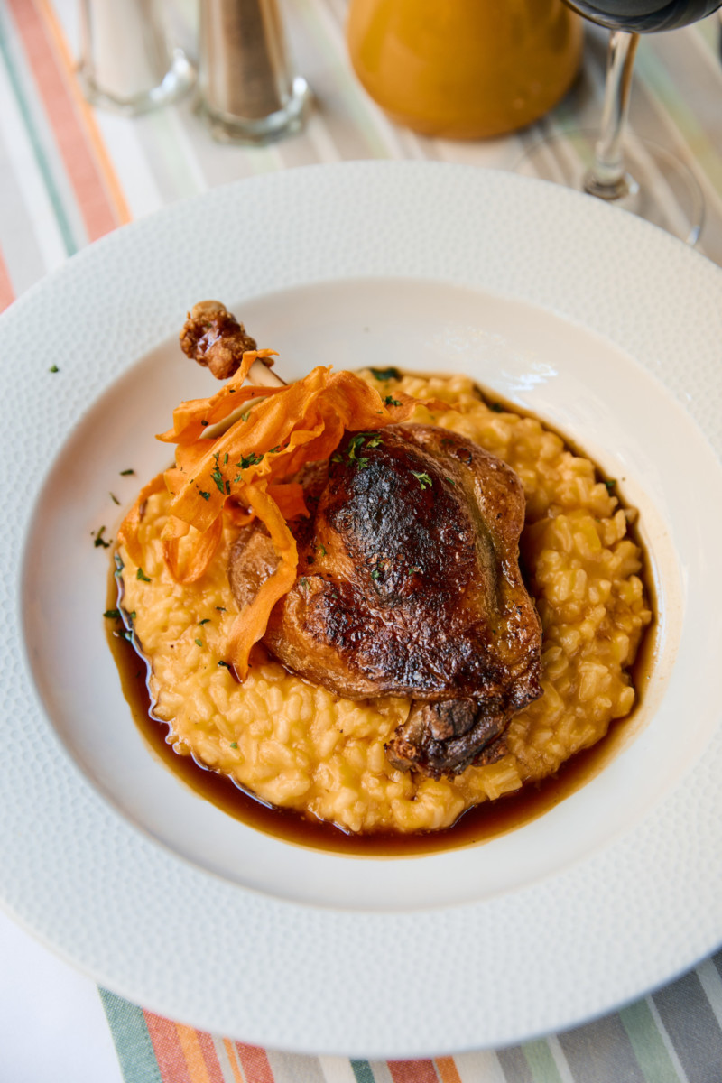 66. Muslo de pato crujiente al horno con risotto de calabaza foto g i l