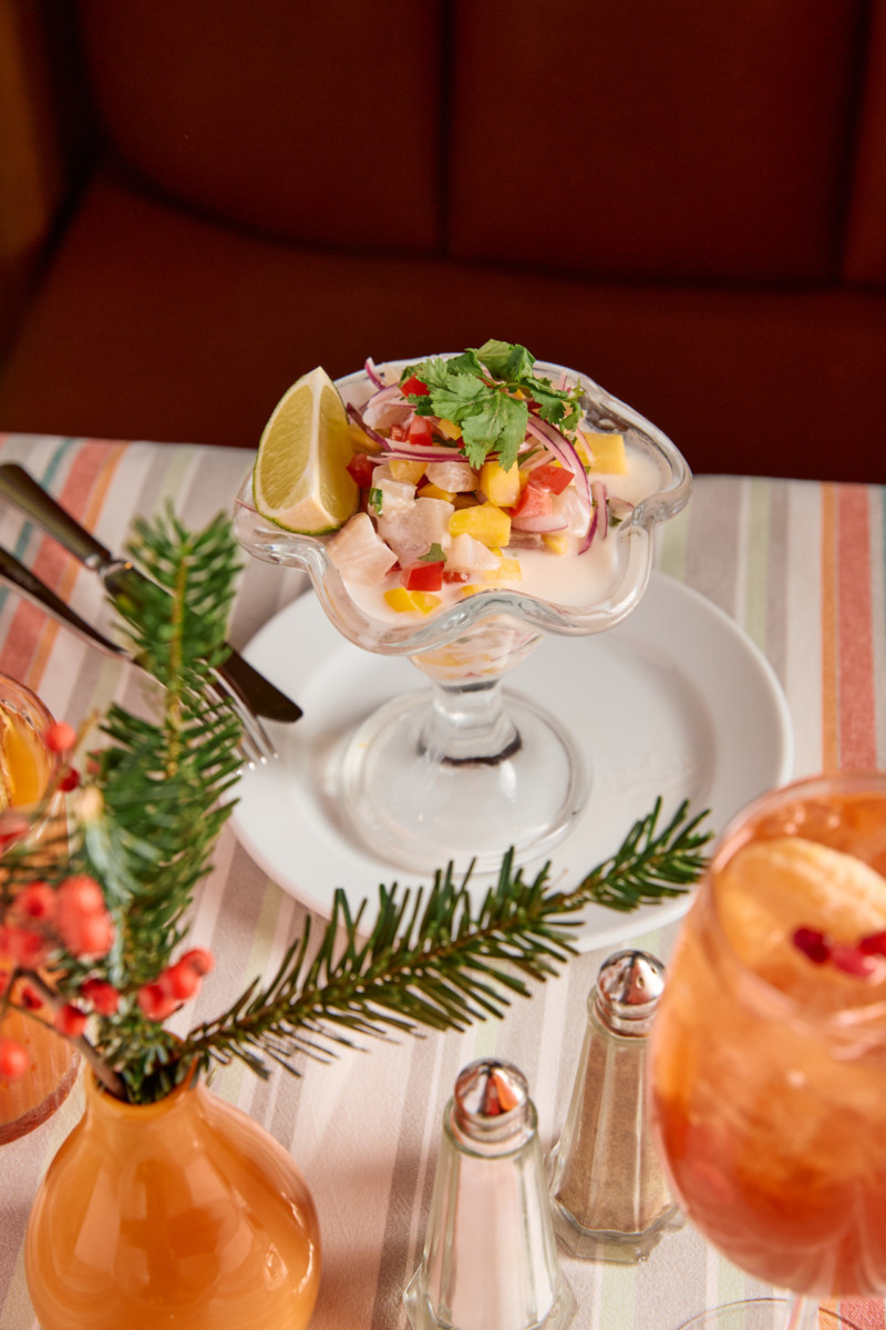 58. Ceviche di pesce peruviano con “latte di tigre” e mango Foto a d