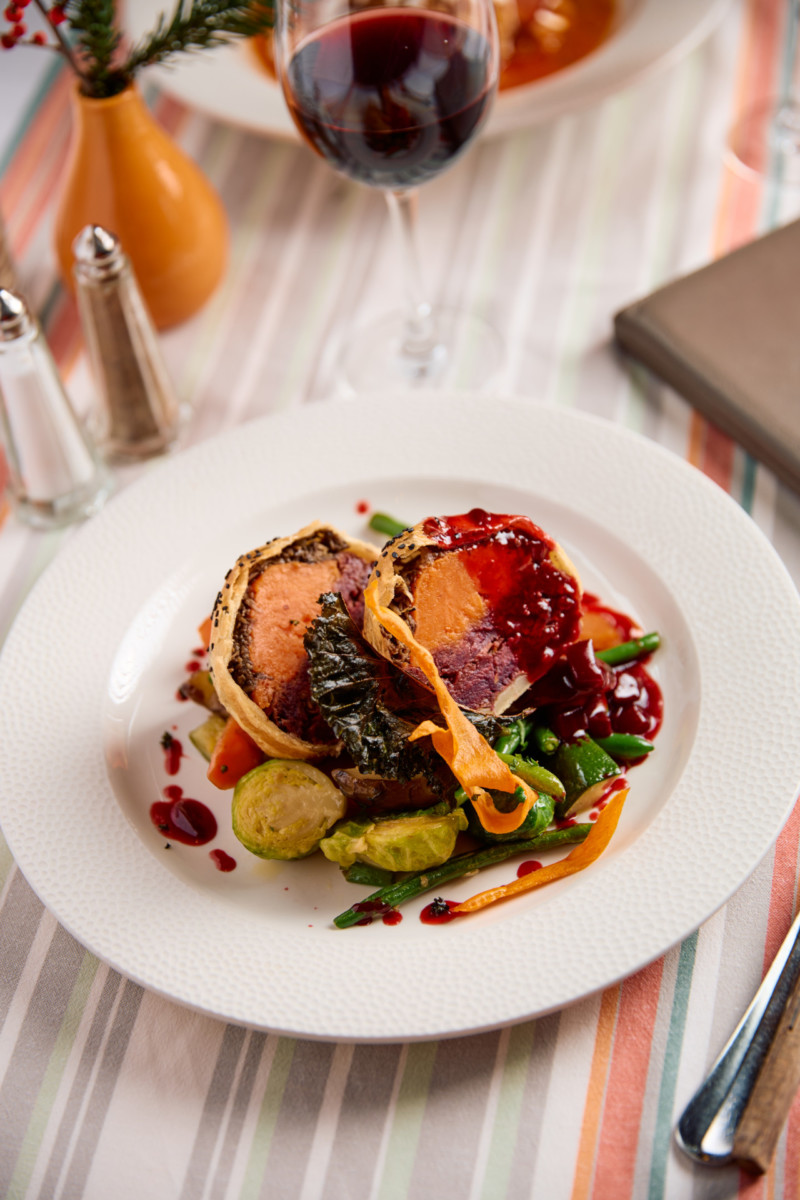 61. “Wellington” vegano di patata dolce con salsa di barbabietola e verdure arrostite (funghi, tartufo) Foto a i k