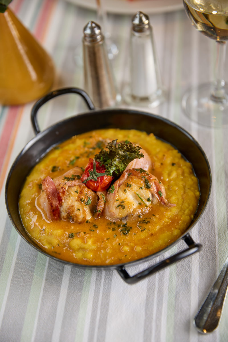 67. Stufato di fagioli a lenta cottura con spalla di maiale affumicata, salsiccia di mangalica fatta in casa e uovo sodo di Menza Foto a c i
